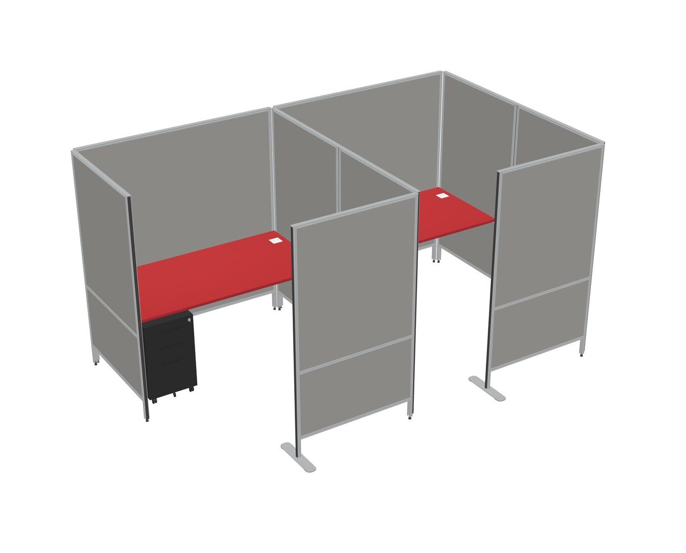 Prism Red Flexible Panel System With Privacy For 2 + Metal Mobile Drawers