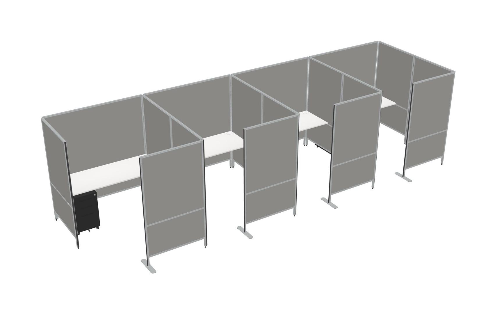 White Flexible Panel System With Privacy For 4 + Metal Mobile Drawers