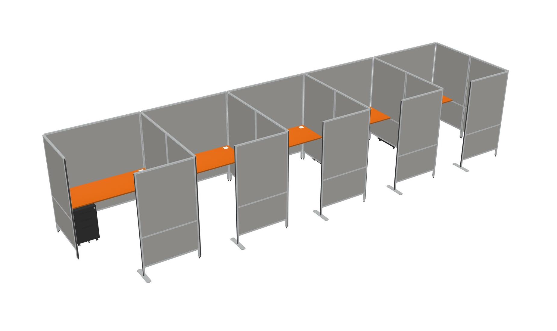 Orange Flexible Panel System With Privacy For 5 + Metal Mobile Drawers