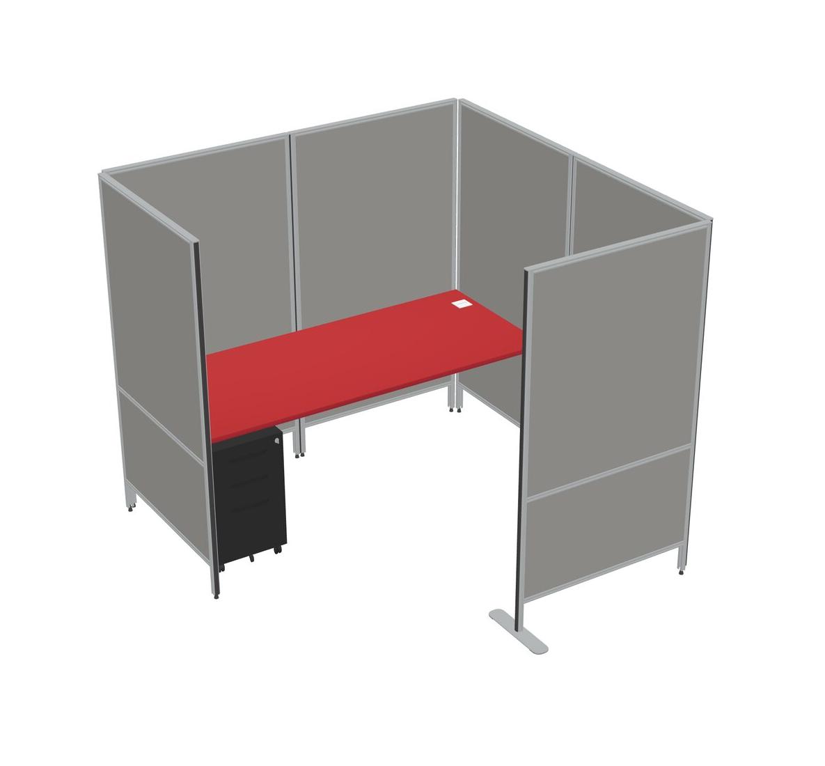 Prism Red Flexible Panel System With Privacy For 1 + Metal Mobile Drawers