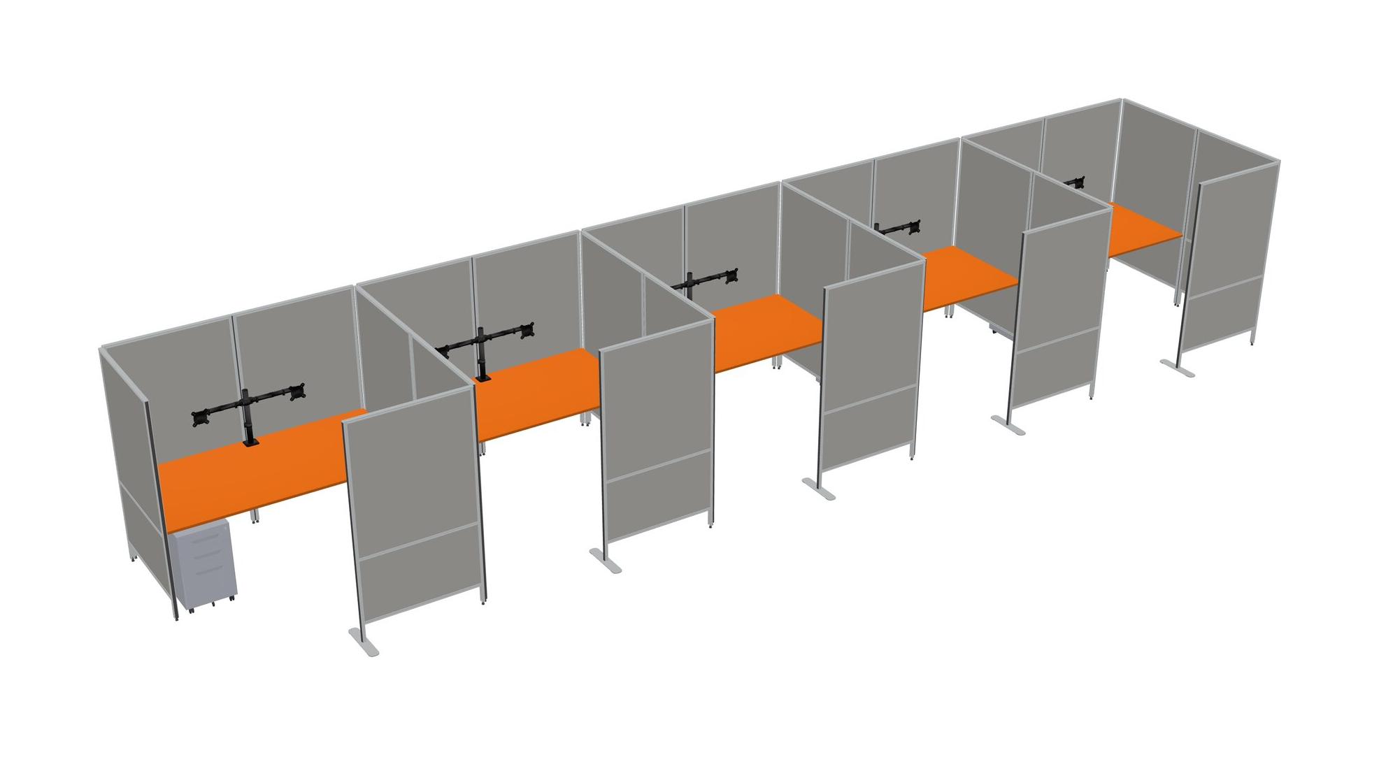 Orange Flexible Panel System With Privacy For 5 + Metal Mobile Drawers + Monitor Arm (double Arms)