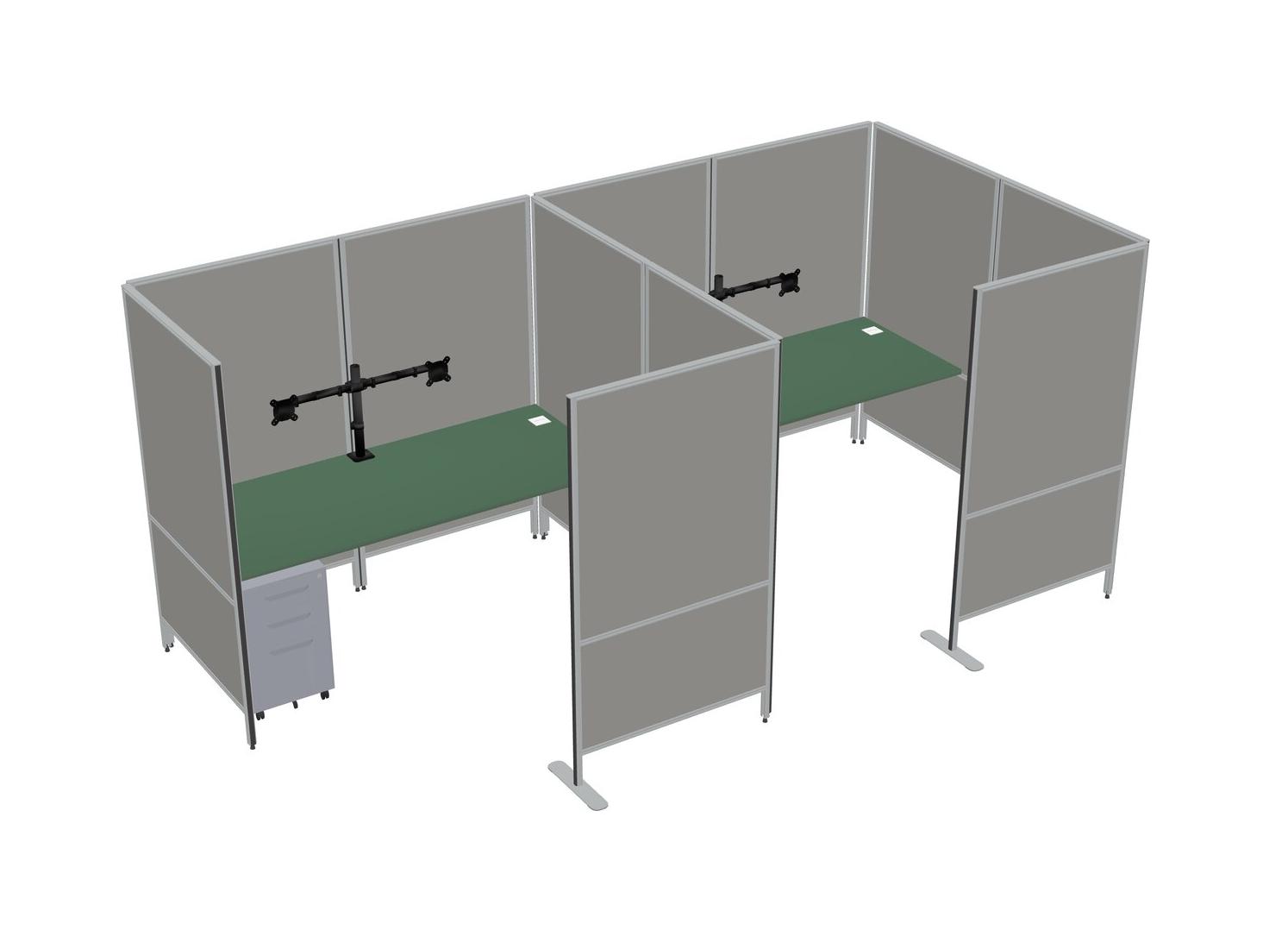 Green Flexible Panel System With Privacy For 2 + Metal Mobile Drawers + Monitor Arm (double Arms)