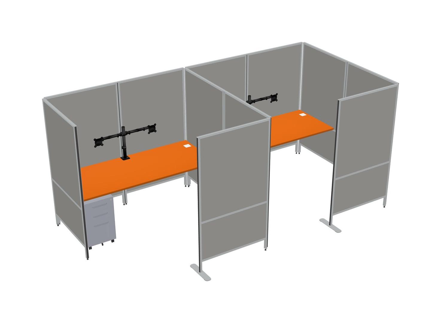 Orange Flexible Panel System With Privacy For 2 + Metal Mobile Drawers + Monitor Arm (double Arms)