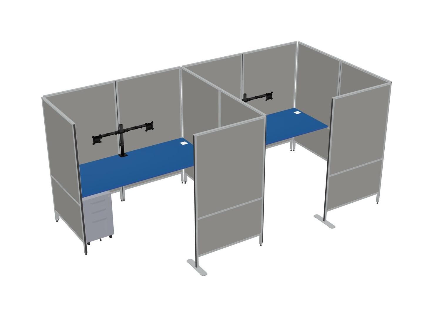 Prism Blue Flexible Panel System With Privacy For 2 + Metal Mobile Drawers + Monitor Arm (double Arms)