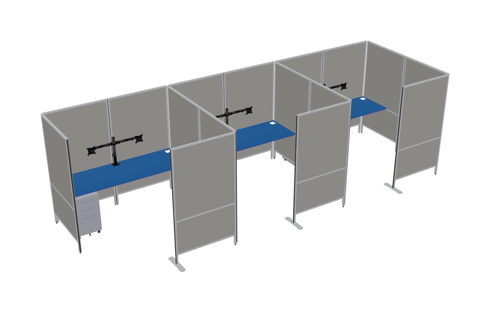 Prism Blue Flexible Panel System With Privacy For 3 + Metal Mobile Drawers + Monitor Arm (double Arms)