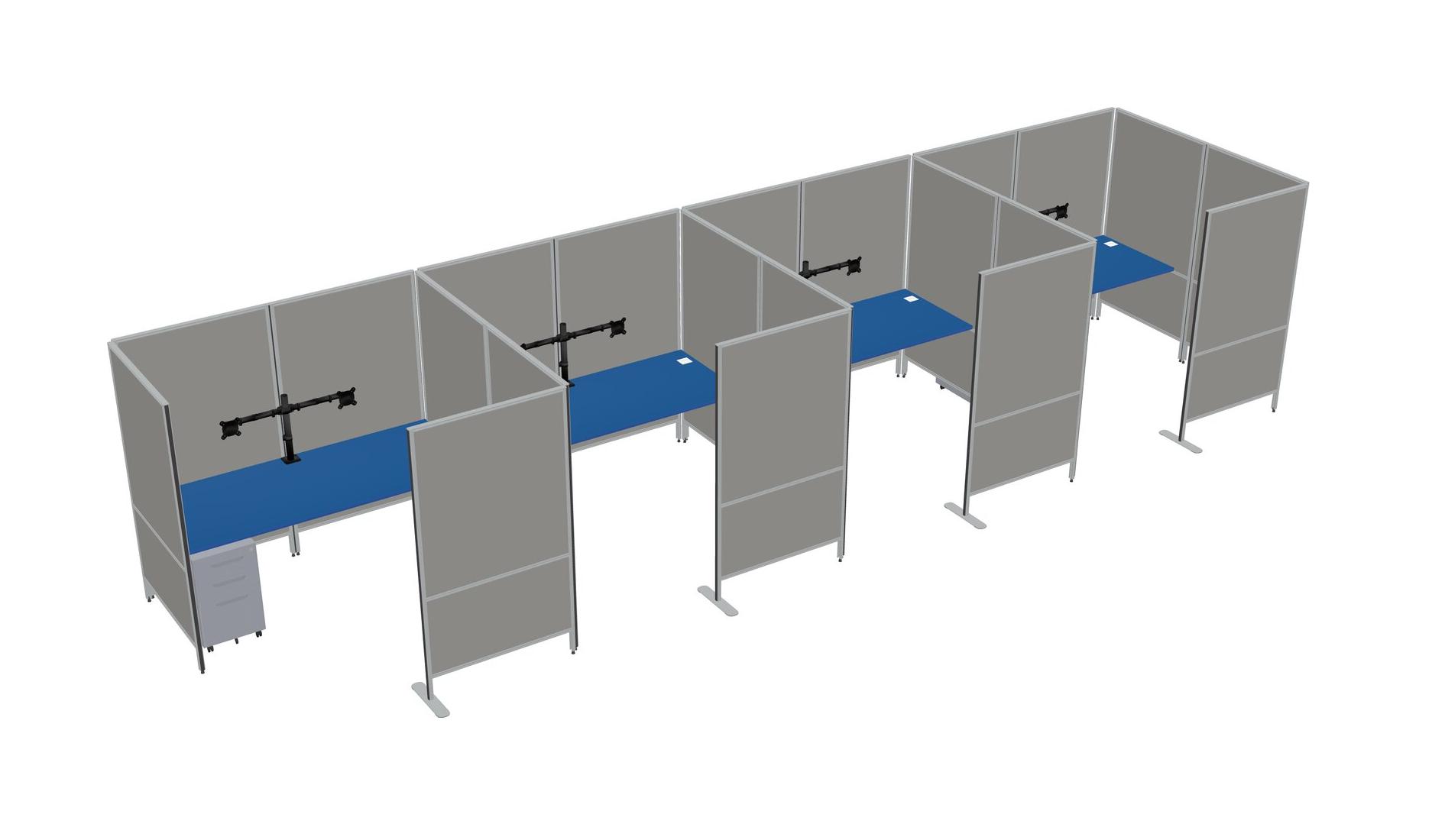 Prism Blue Flexible Panel System With Privacy For 4 + Metal Mobile Drawers + Monitor Arm (double Arms)