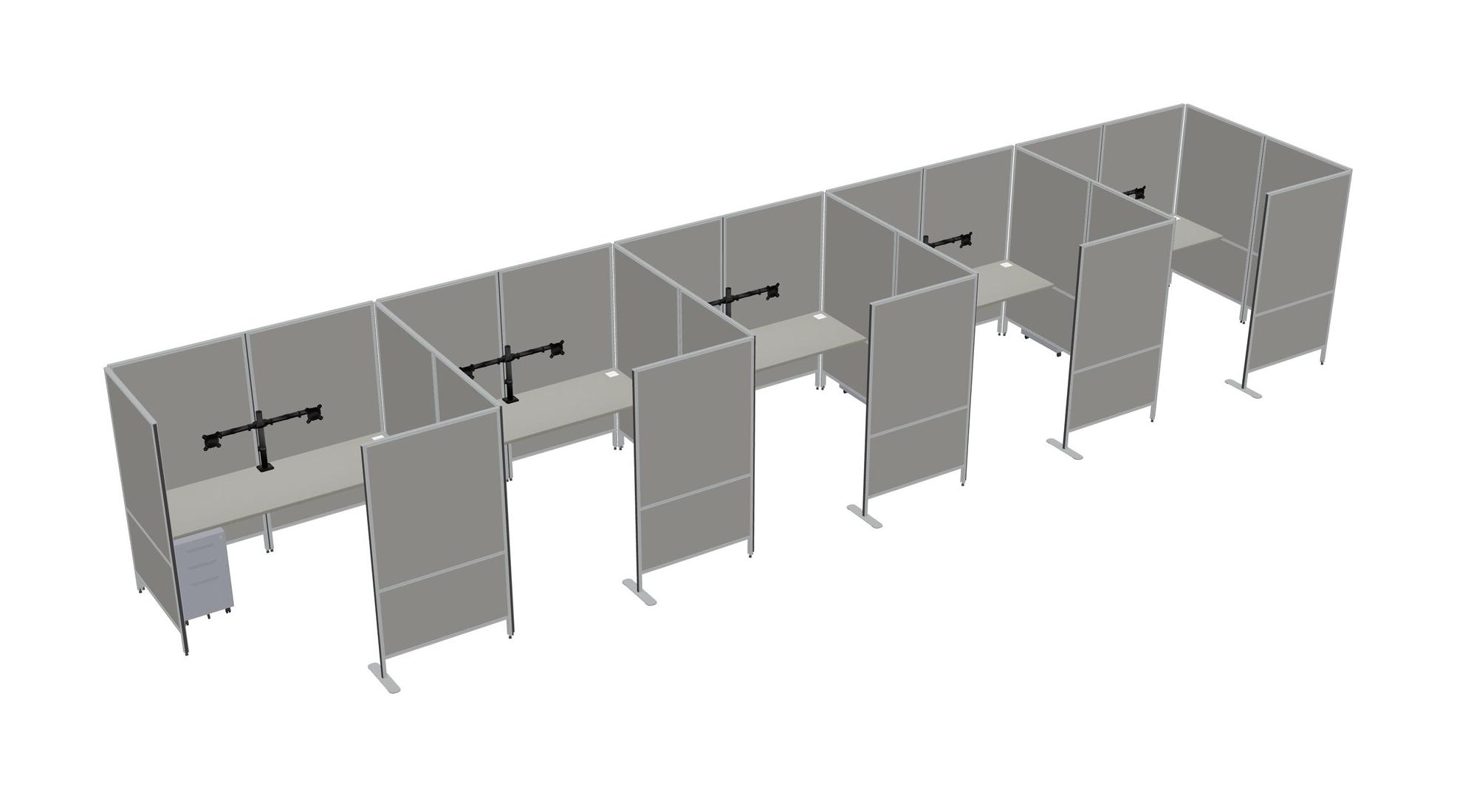 Grey Shadows Flexible Panel System With Privacy For 5 + Metal Mobile Drawers + Monitor Arm (double Arms)
