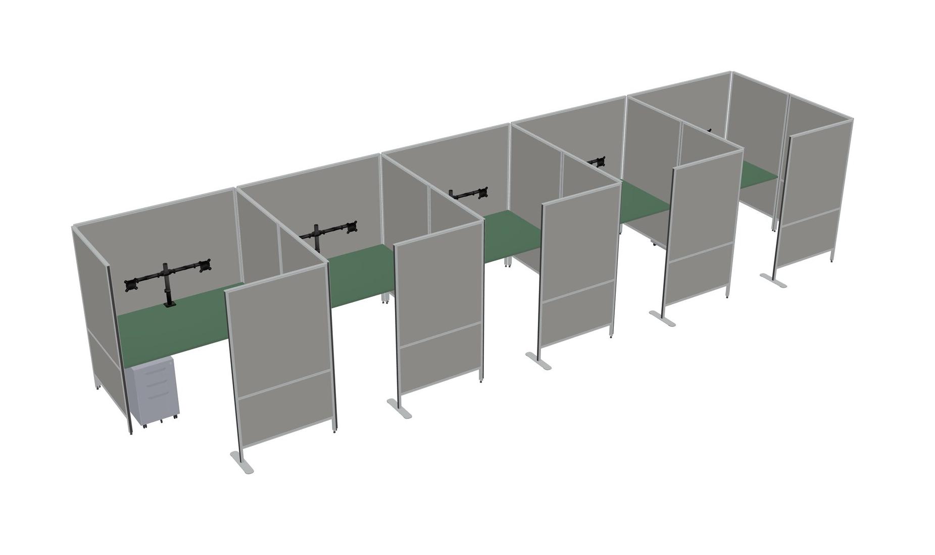 Green Flexible Panel System With Privacy For 5 + Metal Mobile Drawers + Monitor Arm (double Arms)