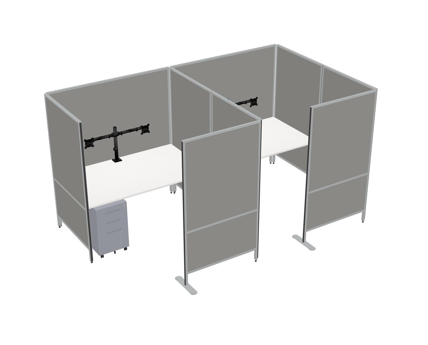 White Flexible Panel System With Privacy For 2 + Metal Mobile Drawers + Monitor Arm (double Arms)