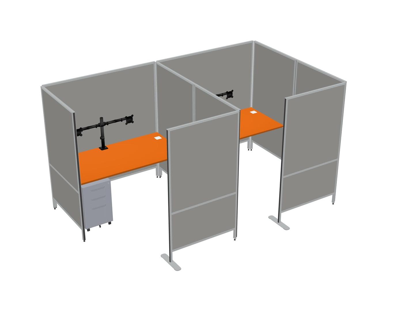 Orange Flexible Panel System With Privacy For 2 + Metal Mobile Drawers + Monitor Arm (double Arms)