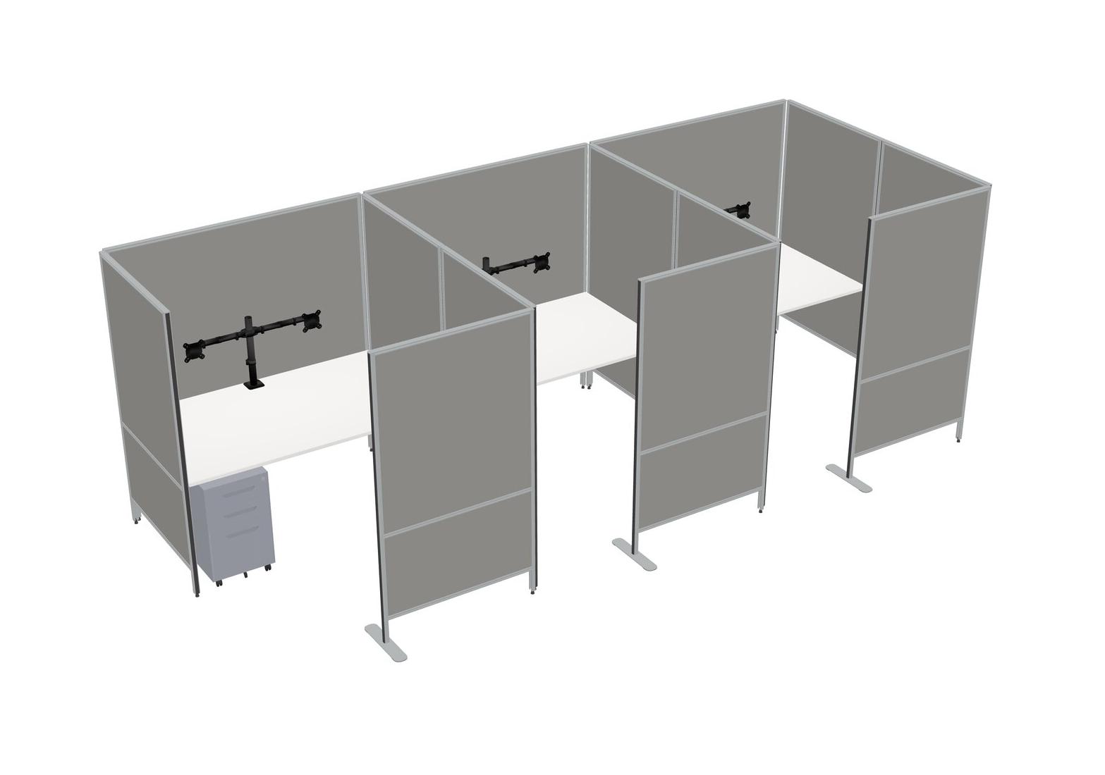 White Flexible Panel System With Privacy For 3 + Metal Mobile Drawers + Monitor Arm (double Arms)