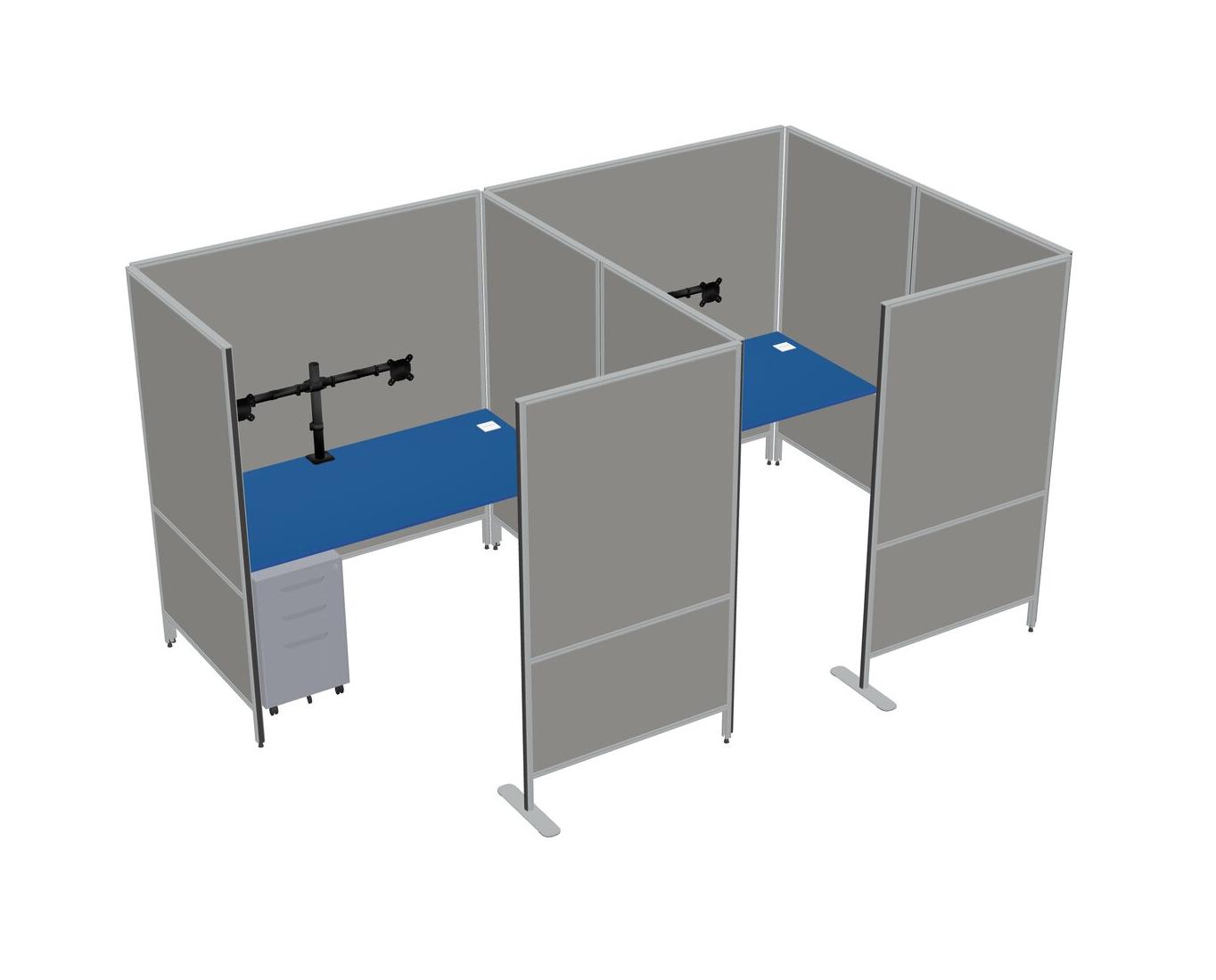 Prism Blue Flexible Panel System With Privacy For 2 + Metal Mobile Drawers + Monitor Arm (double Arms)