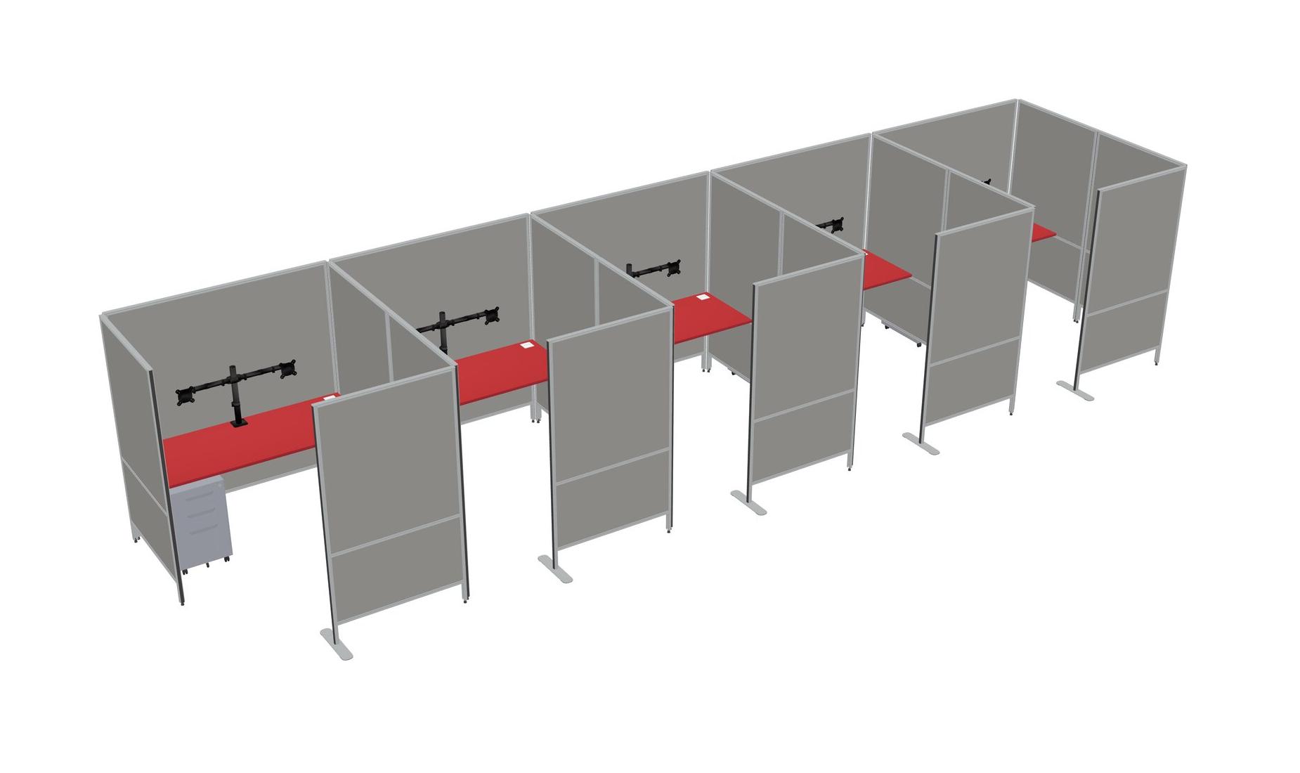 Prism Red Flexible Panel System With Privacy For 5 + Metal Mobile Drawers + Monitor Arm (double Arms)