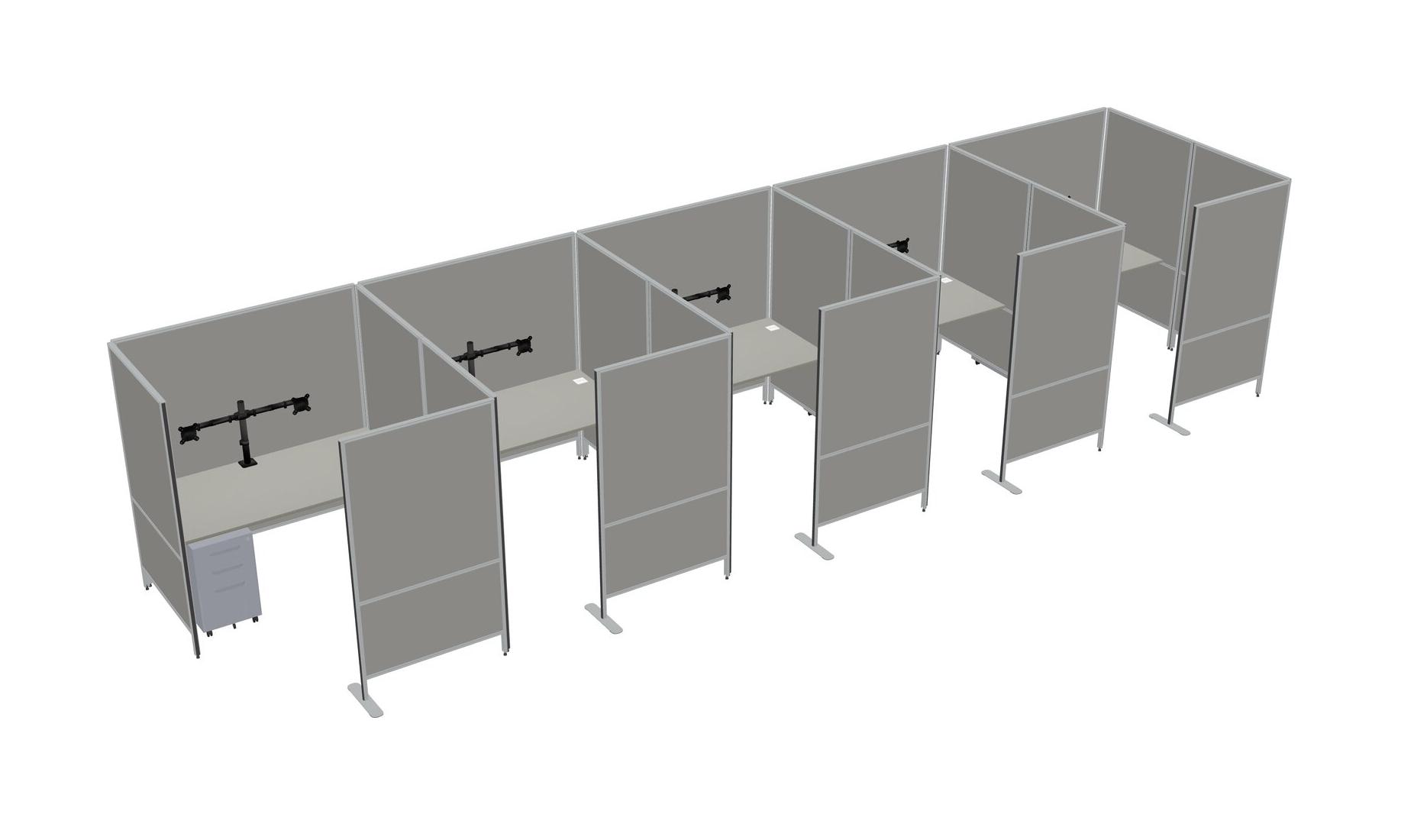 Grey Shadows Flexible Panel System With Privacy For 5 + Metal Mobile Drawers + Monitor Arm (double Arms)