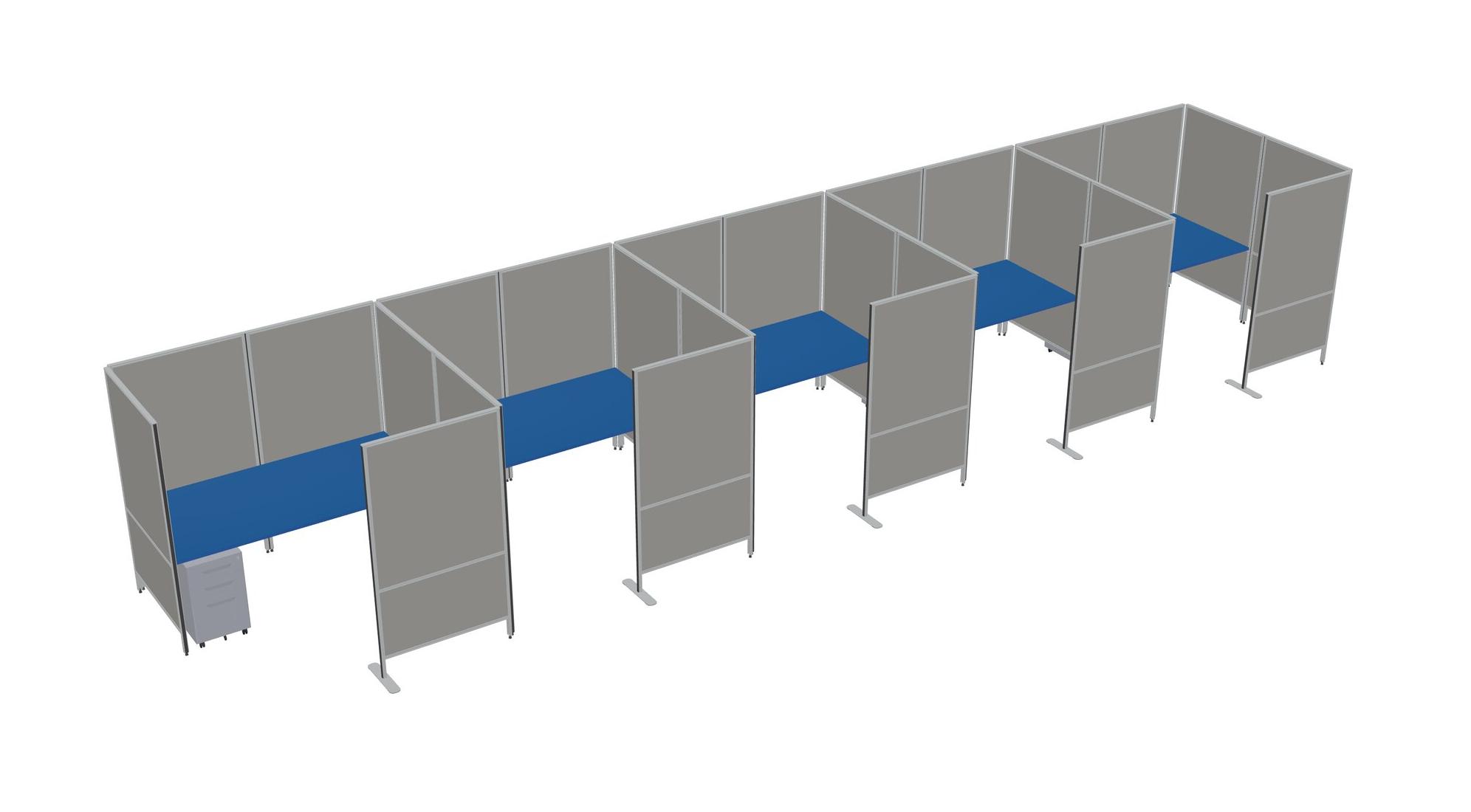 Prism Blue Flexible Panel System With Privacy For 5 + Metal Mobile Drawers