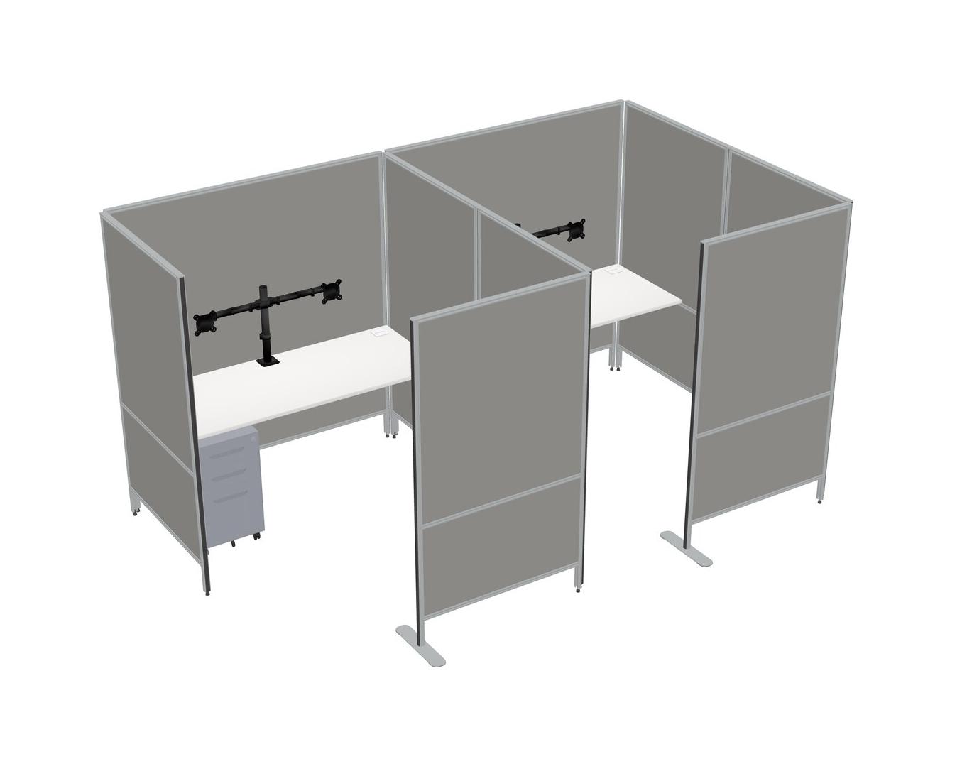 White Flexible Panel System With Privacy For 2 + Metal Mobile Drawers + Monitor Arm (double Arms)