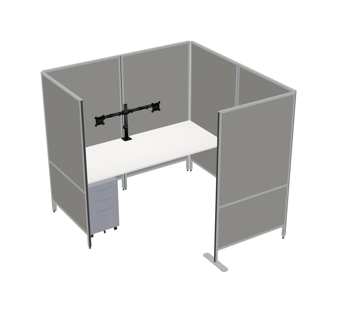 White Flexible Panel System With Privacy For 1 + Metal Mobile Drawers + Monitor Arm (double Arms)