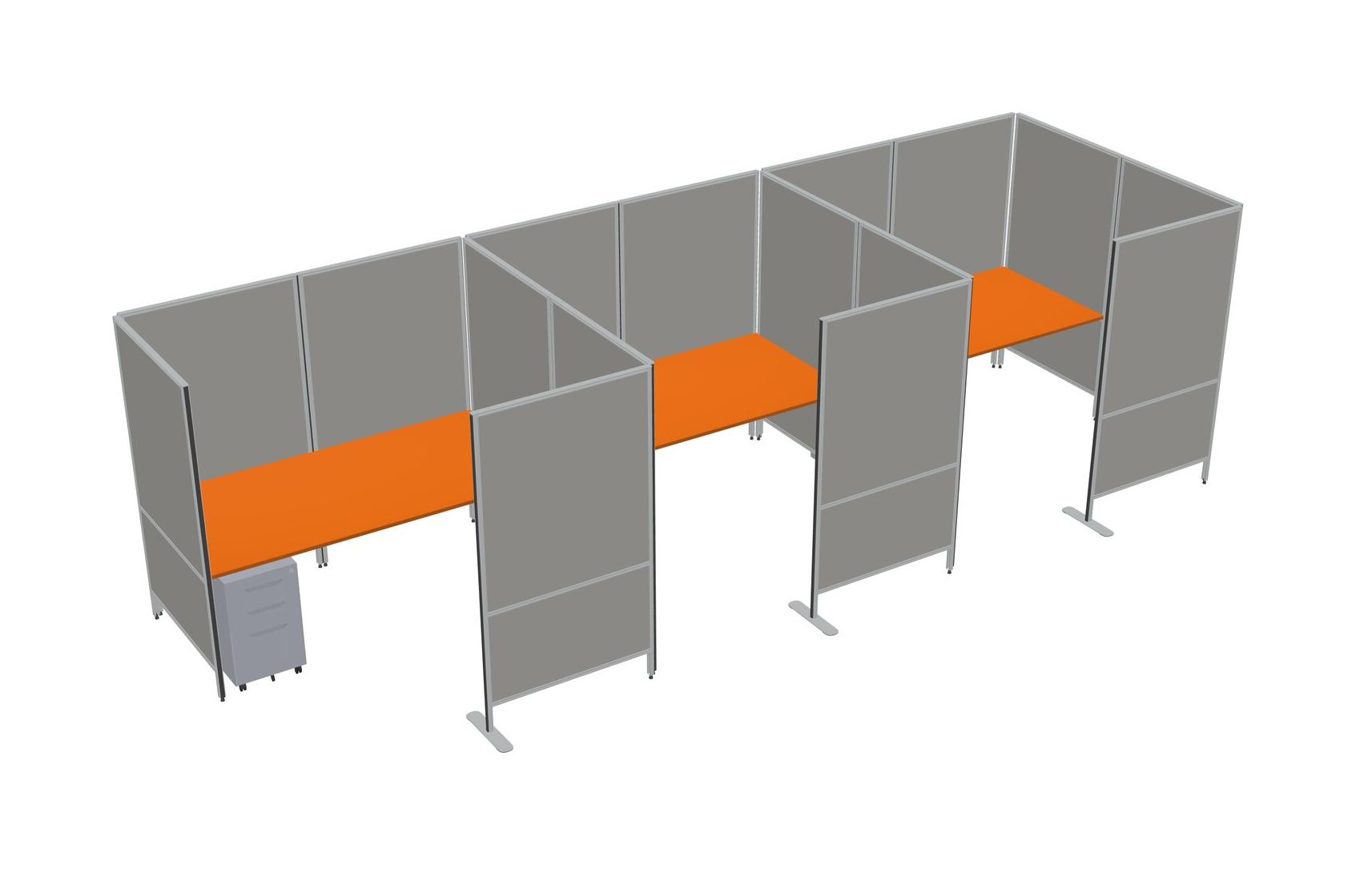 Orange Flexible Panel System With Privacy For 3 + Metal Mobile Drawers