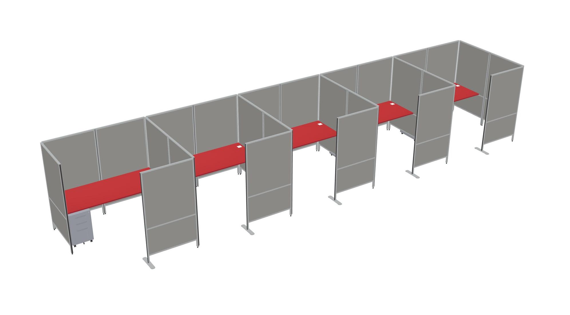 Prism Red Flexible Panel System With Privacy For 5 + Metal Mobile Drawers