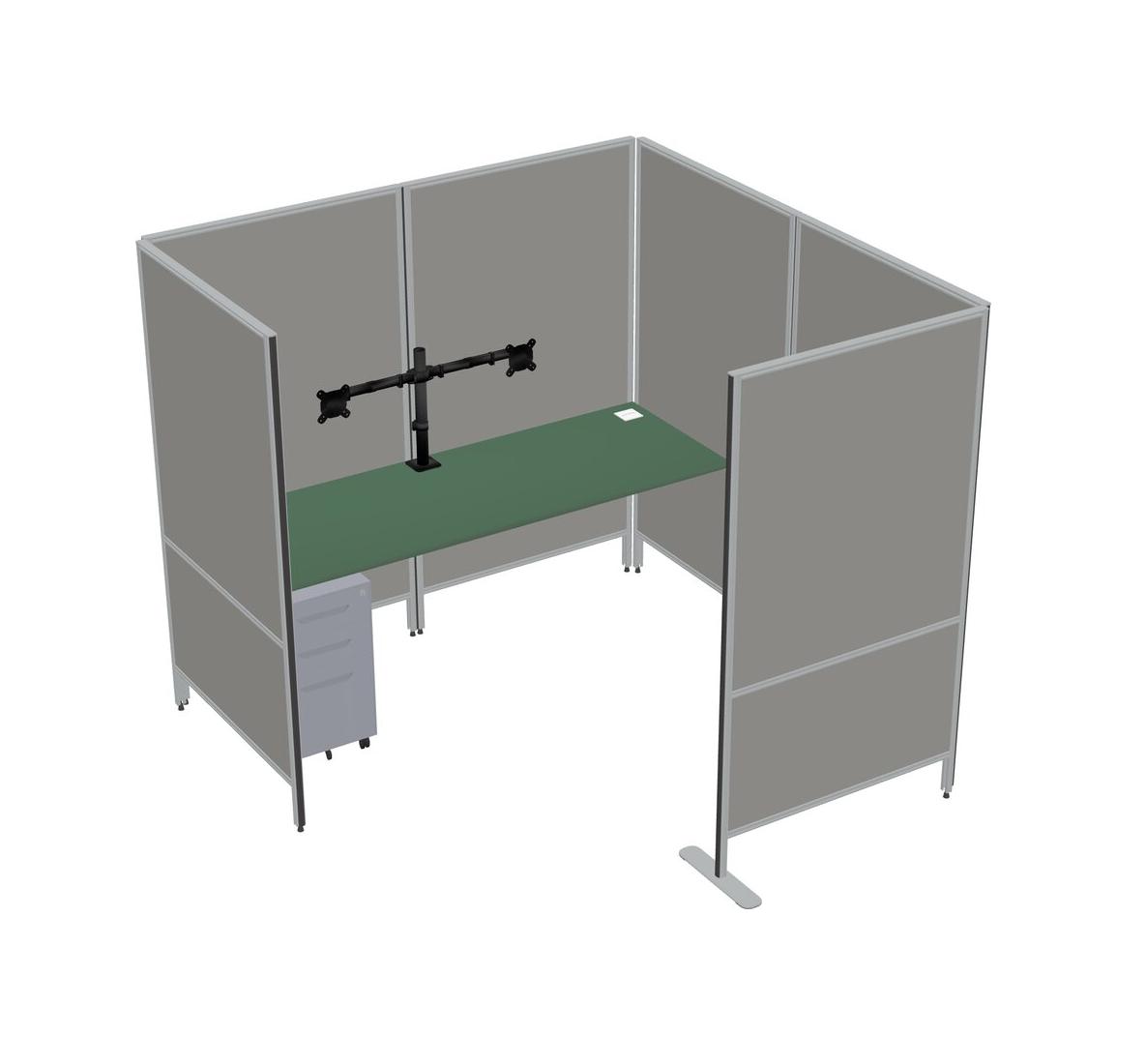 Green Flexible Panel System With Privacy For 1 + Metal Mobile Drawers + Monitor Arm (double Arms)