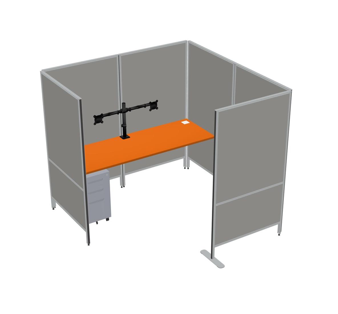 Orange Flexible Panel System With Privacy For 1 + Metal Mobile Drawers + Monitor Arm (double Arms)