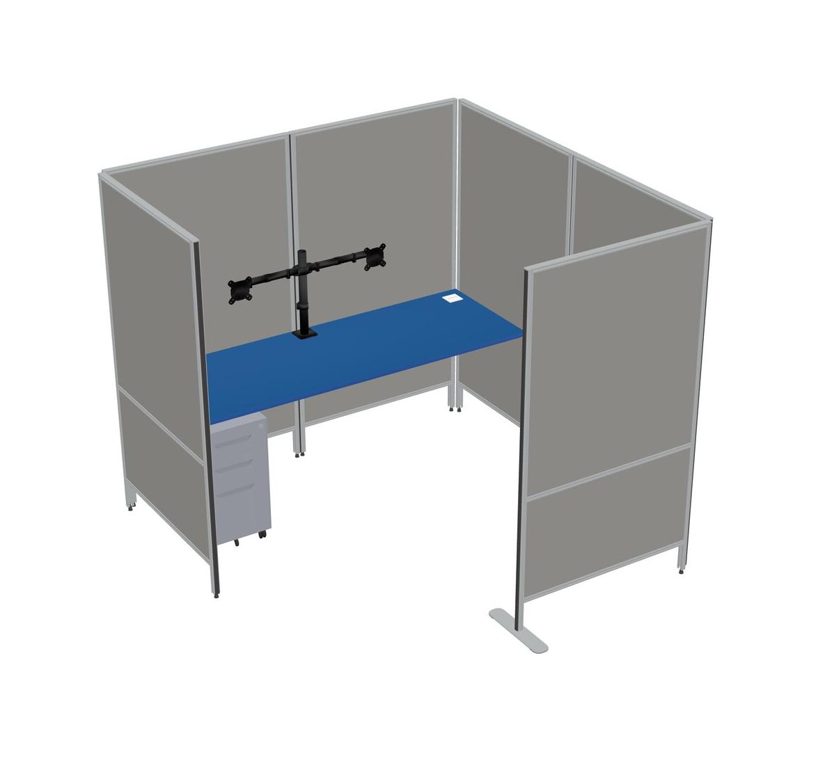 Prism Blue Flexible Panel System With Privacy For 1 + Metal Mobile Drawers + Monitor Arm (double Arms)