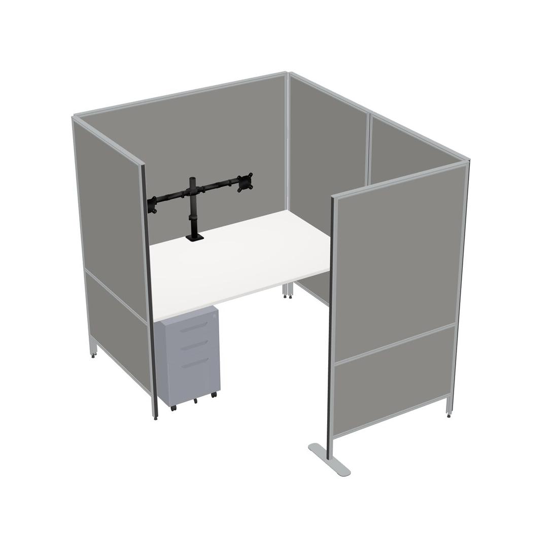 White Flexible Panel System With Privacy For 1 + Metal Mobile Drawers + Monitor Arm (double Arms)