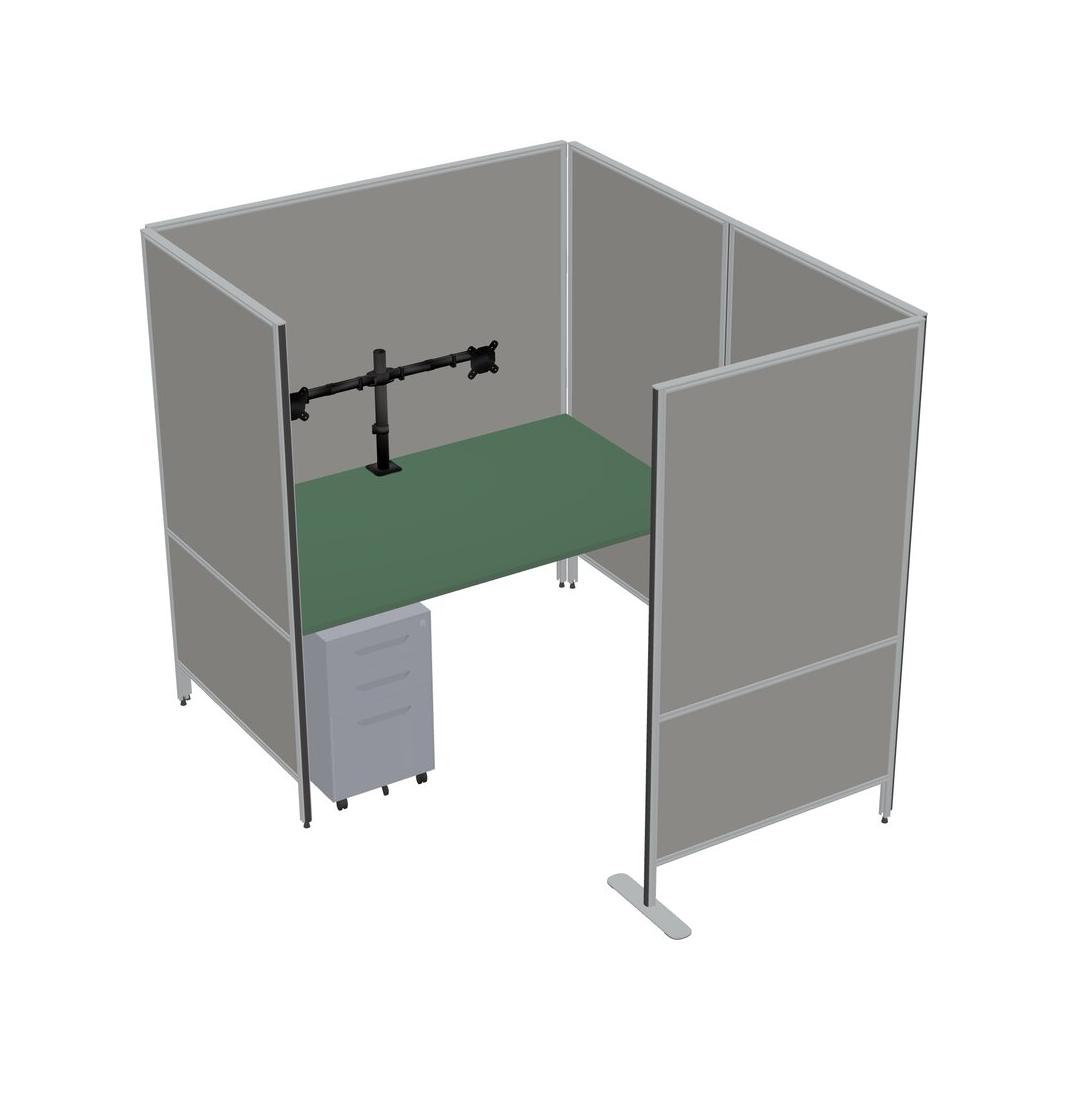 Green Flexible Panel System With Privacy For 1 + Metal Mobile Drawers + Monitor Arm (double Arms)
