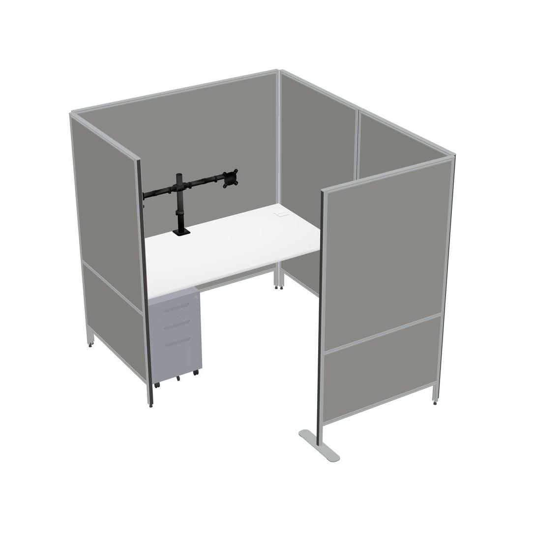 White Flexible Panel System With Privacy For 1 + Metal Mobile Drawers + Monitor Arm (double Arms)
