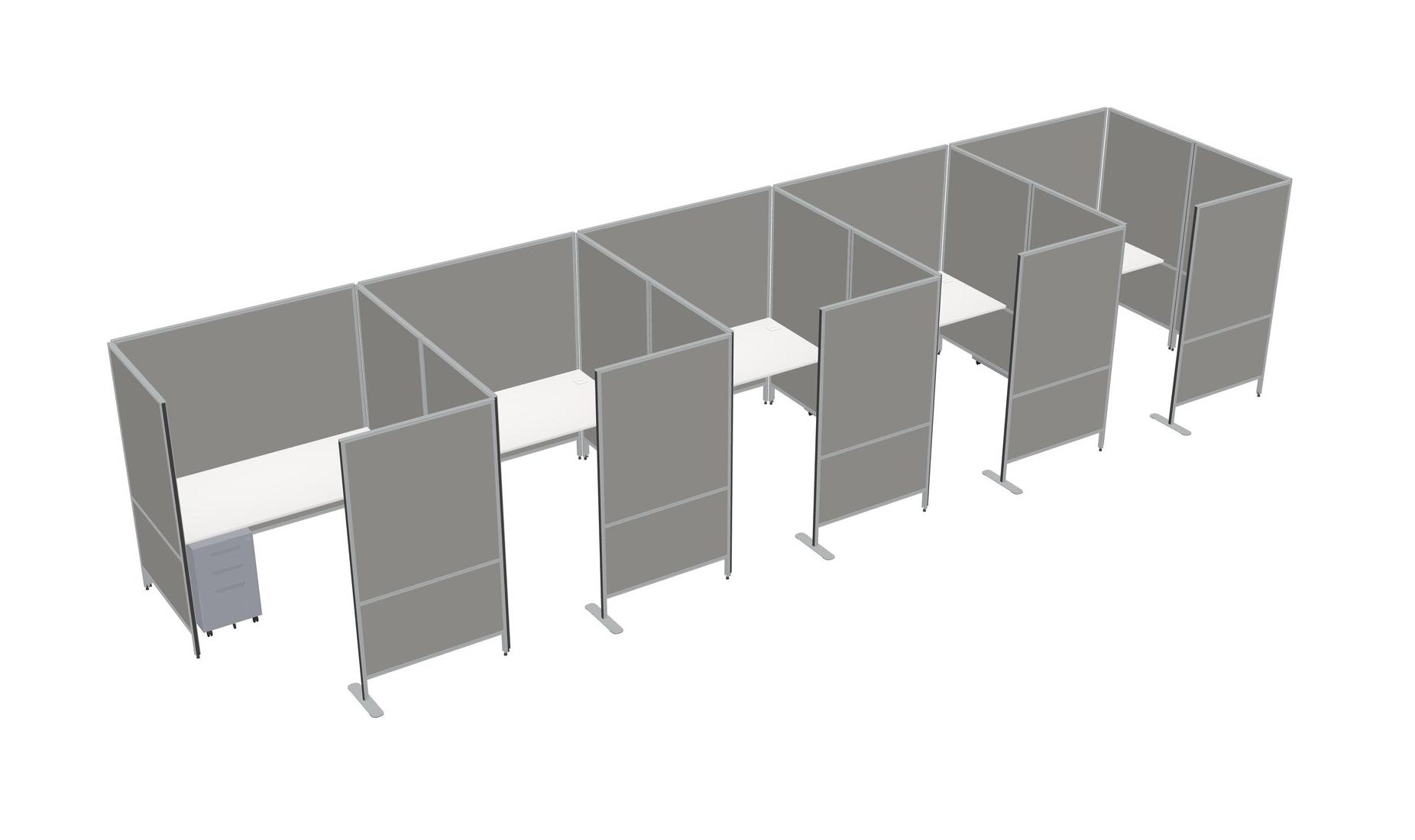 White Flexible Panel System With Privacy For 5 + Metal Mobile Drawers