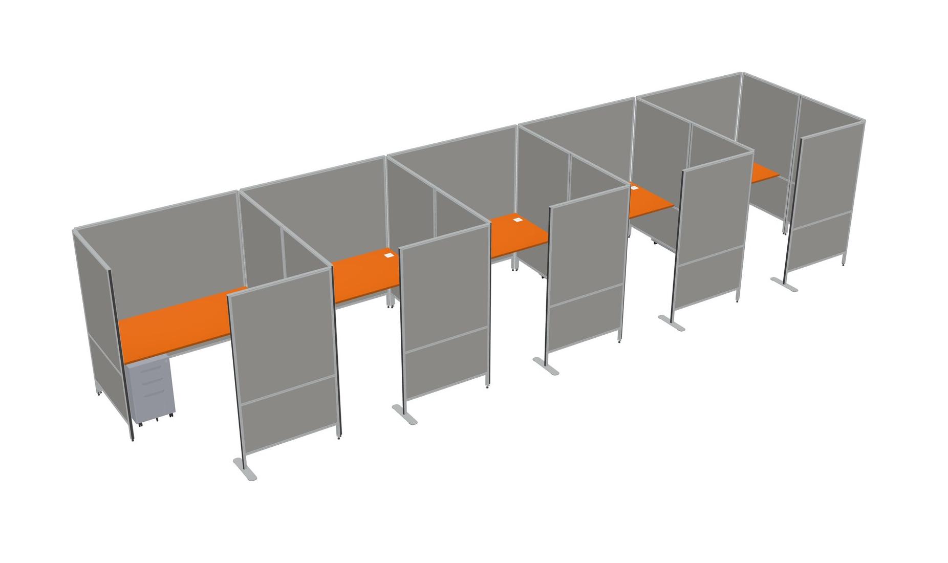 Orange Flexible Panel System With Privacy For 5 + Metal Mobile Drawers