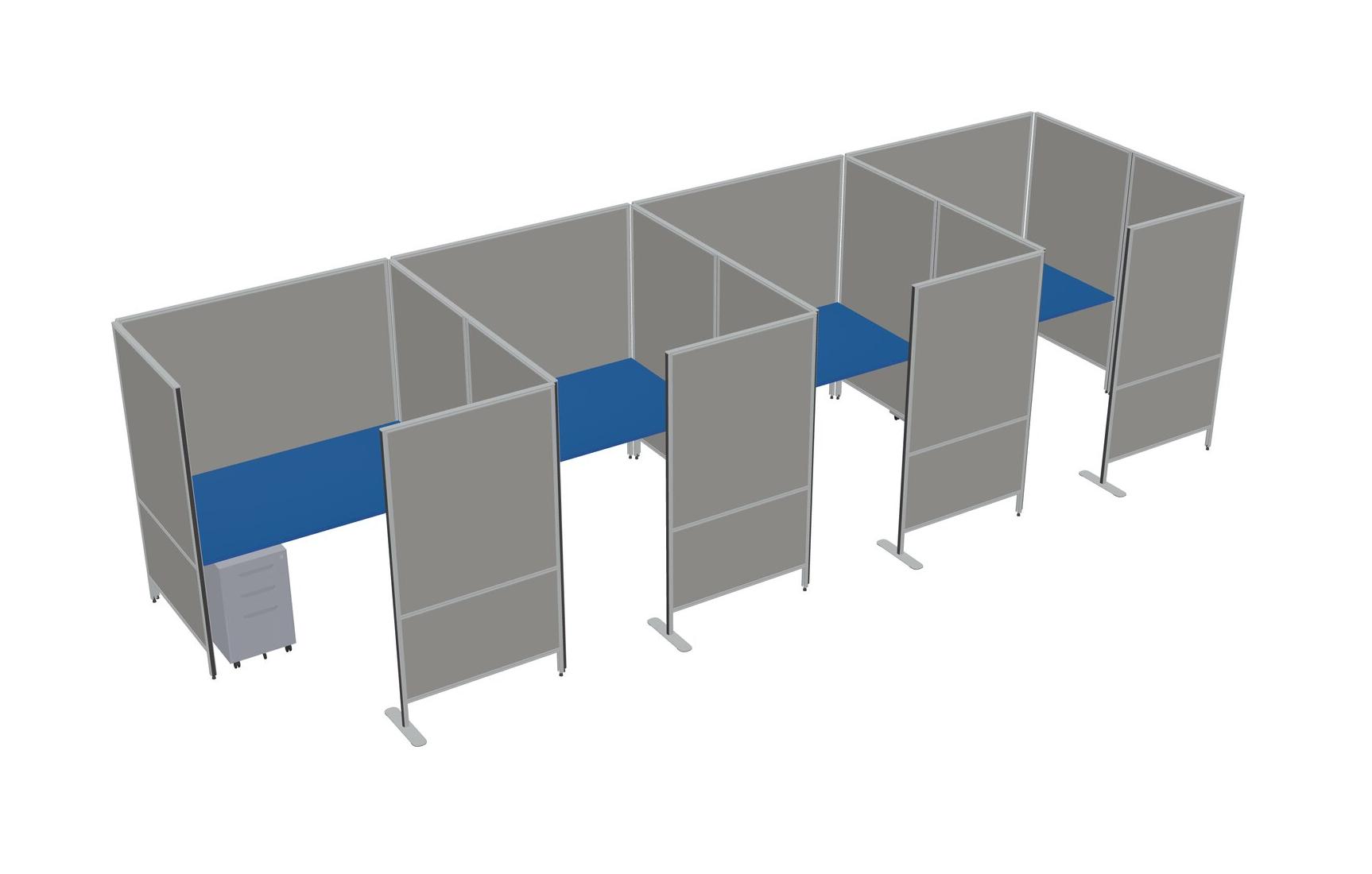Prism Blue Flexible Panel System With Privacy For 4 + Metal Mobile Drawers