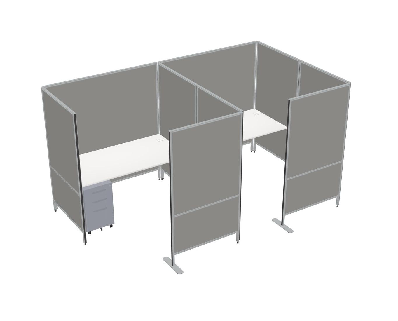 White Flexible Panel System With Privacy For 2 + Metal Mobile Drawers