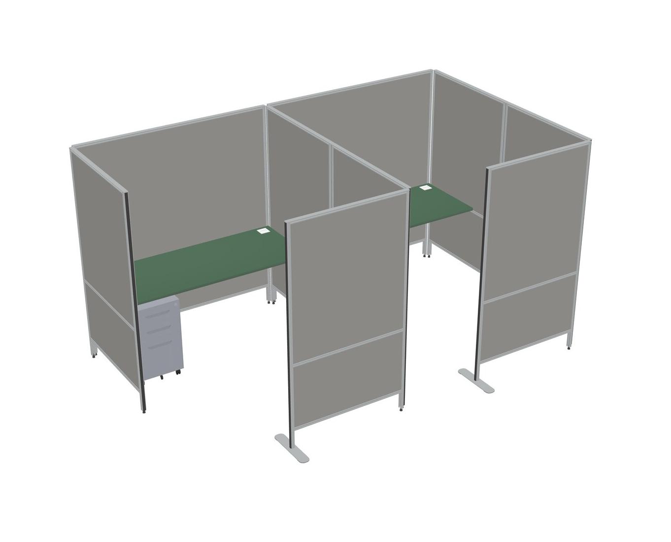 Green Flexible Panel System With Privacy For 2 + Metal Mobile Drawers