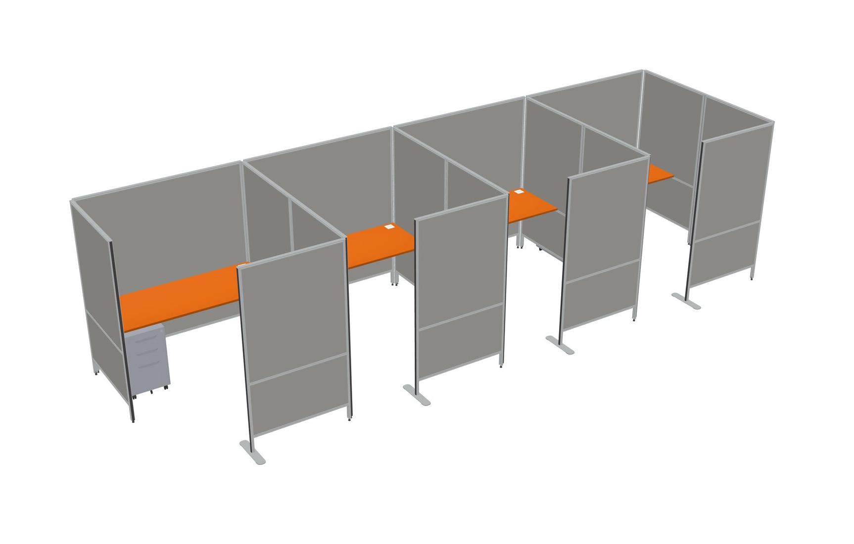 Orange Flexible Panel System With Privacy For 4 + Metal Mobile Drawers