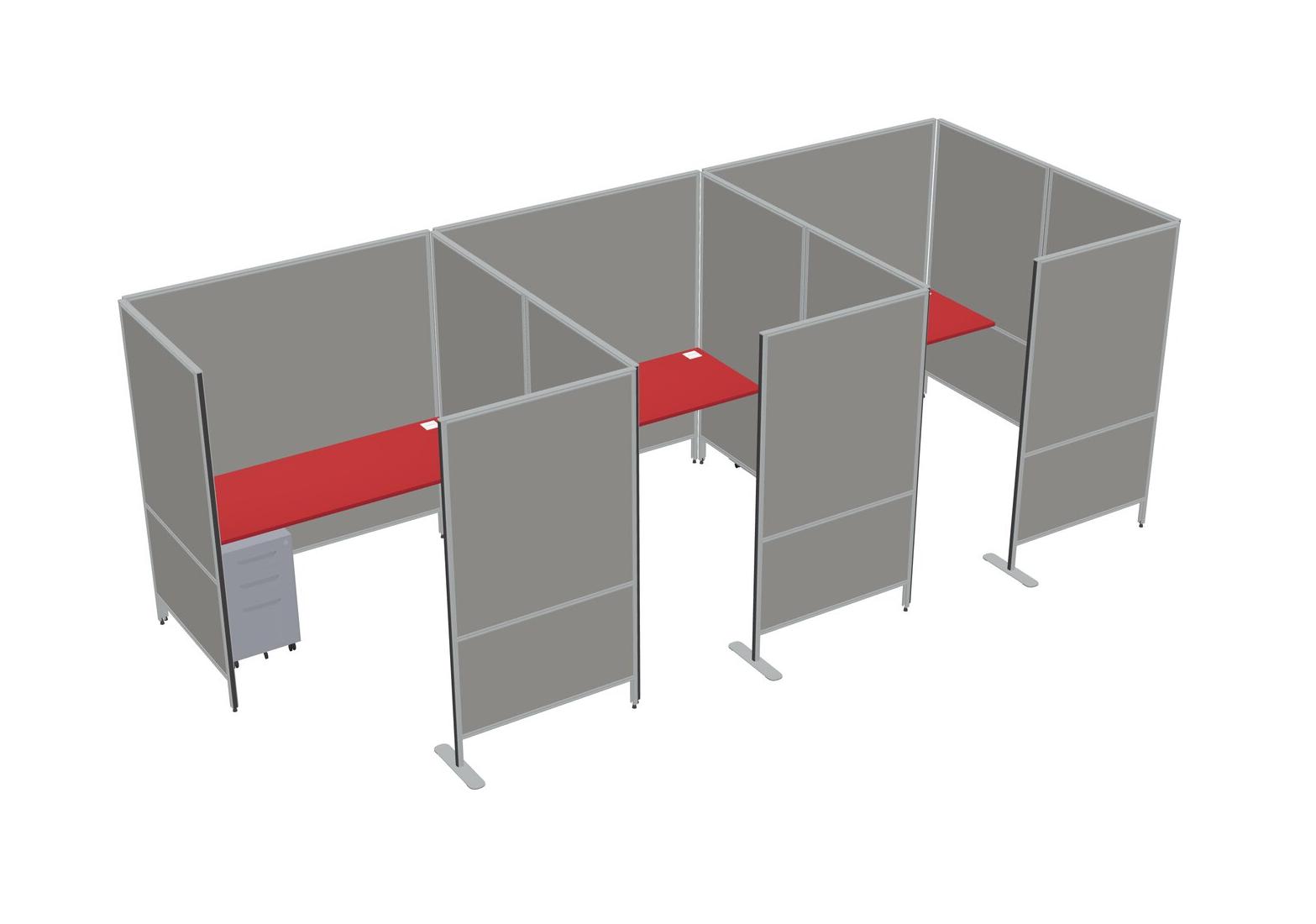 Prism Red Flexible Panel System With Privacy For 3 + Metal Mobile Drawers