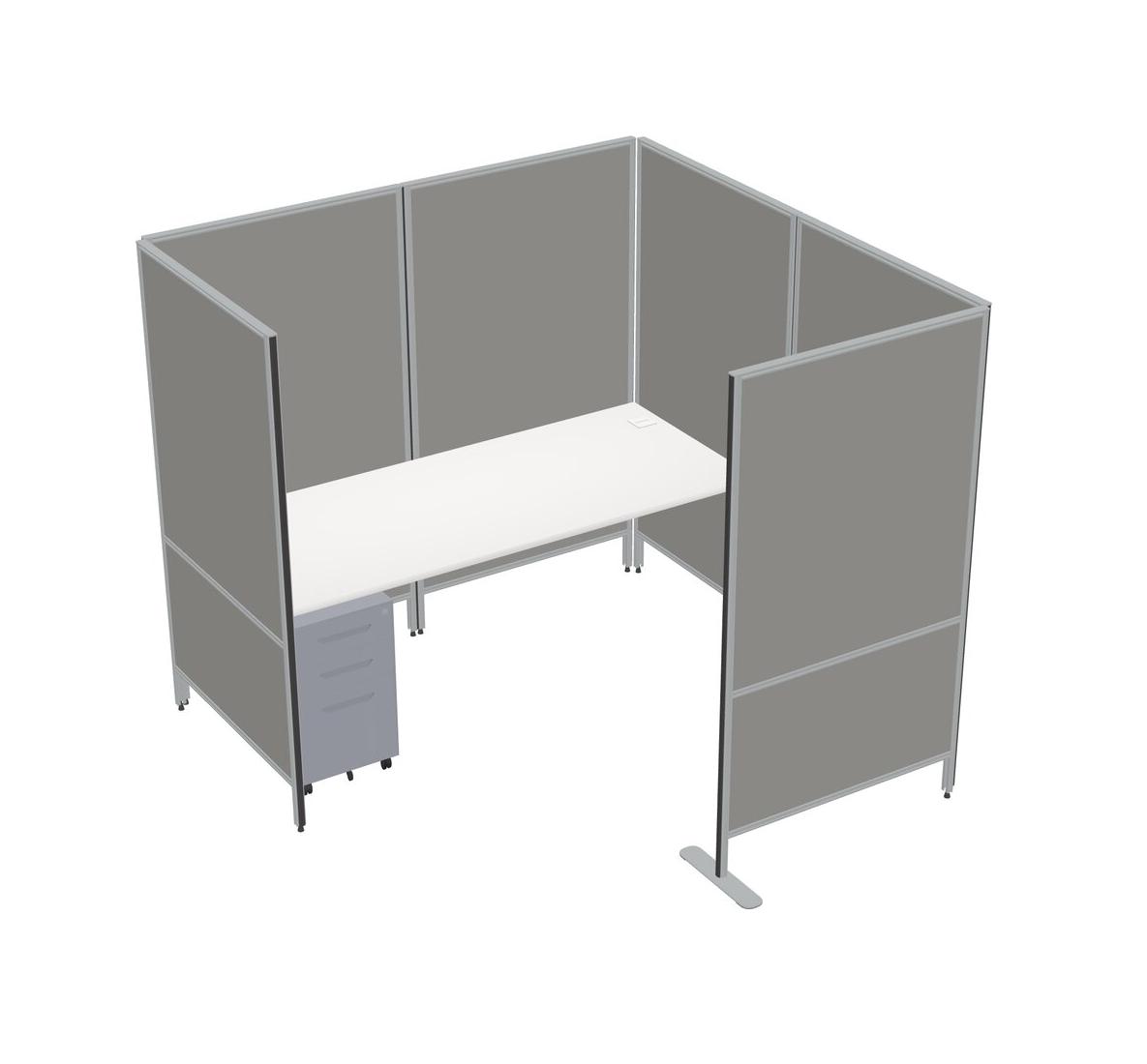White Flexible Panel System With Privacy For 1 + Metal Mobile Drawers