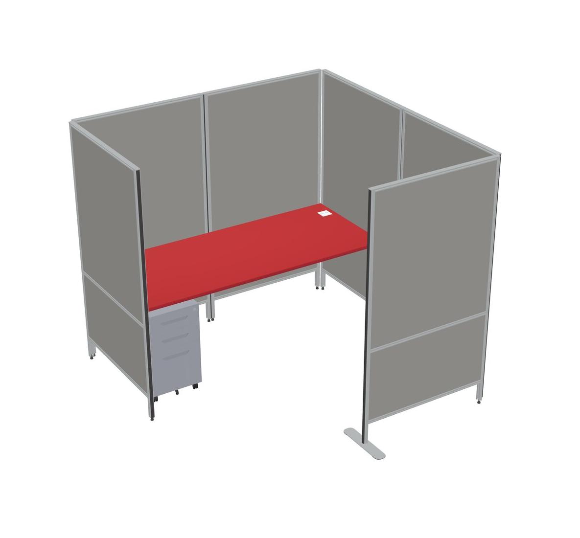 Prism Red Flexible Panel System With Privacy For 1 + Metal Mobile Drawers