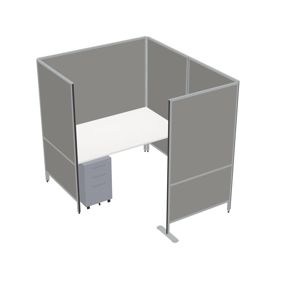 White Flexible Panel System With Privacy For 1 + Metal Mobile Drawers