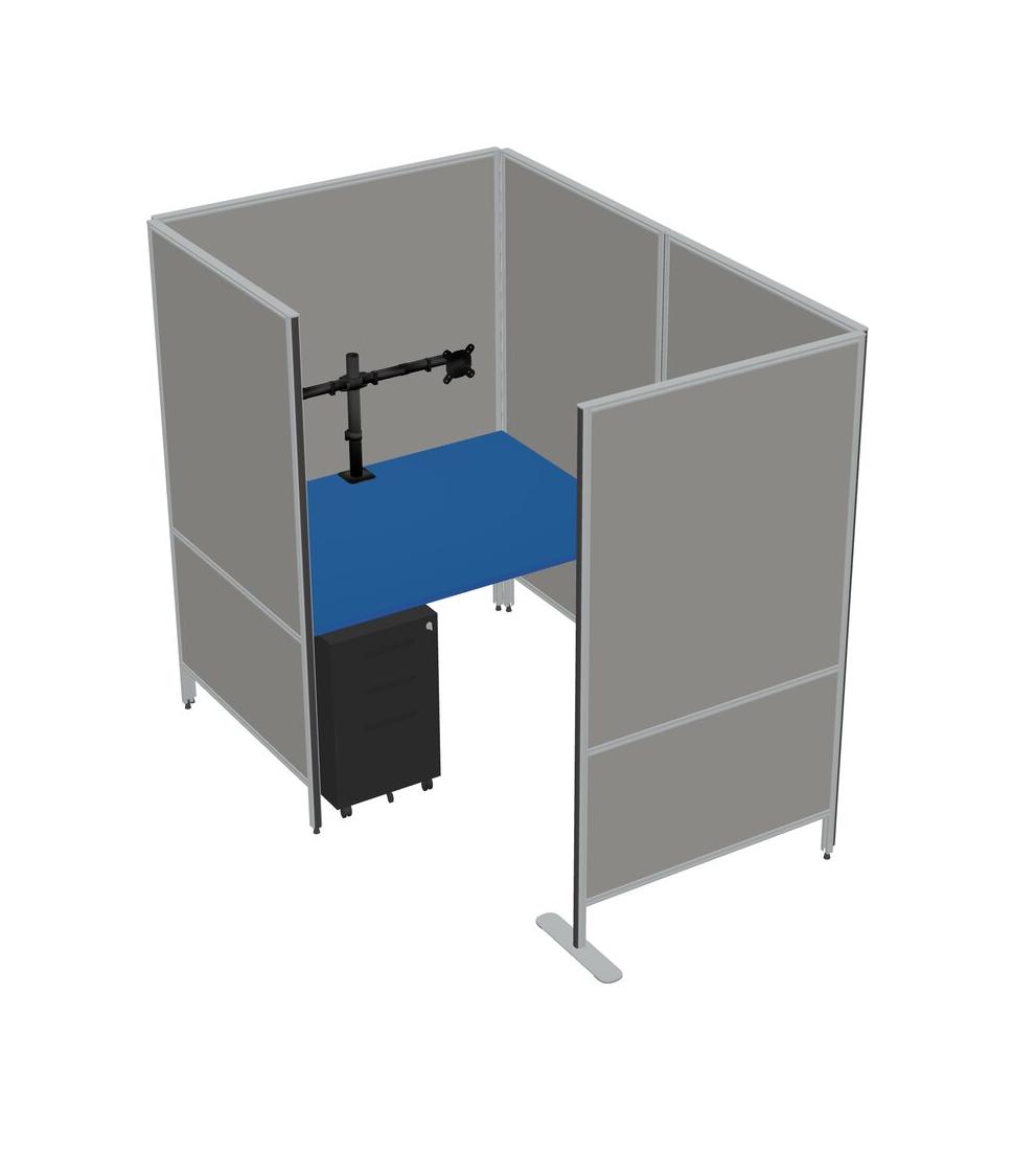 Prism Blue Small Private Panel System + Metal Mobile Drawers