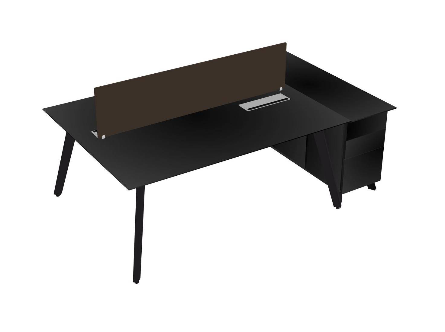 Black Modern Rectangular Shared Office Desk + Storage Cabinet