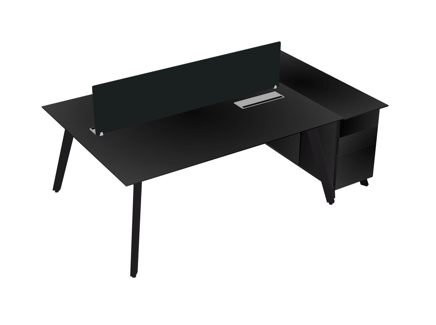 Black Modern Rectangular Shared Office Desk + Storage Cabinet