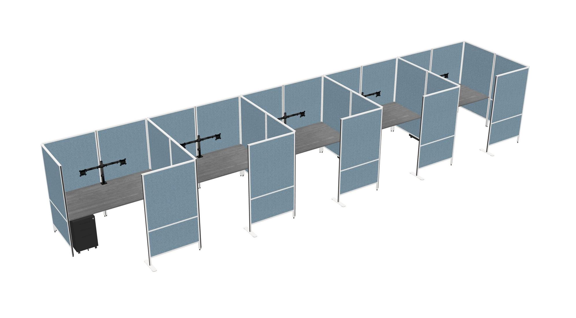 Grey Flexible Panel System With Privacy For 5 + Metal Mobile Drawers + Monitor Arm (double Arms)