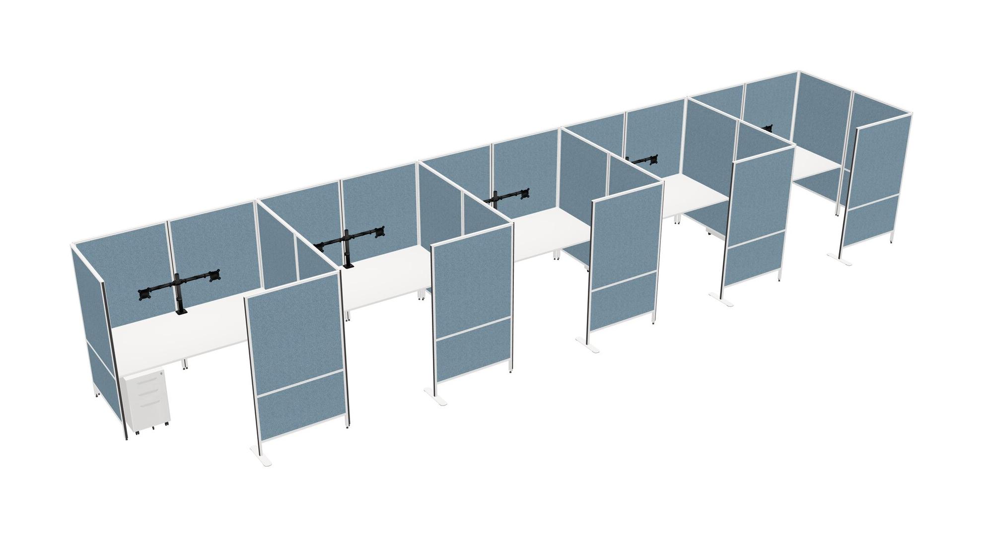 White Flexible Panel System With Privacy For 5 + Metal Mobile Drawers + Monitor Arm (double Arms)