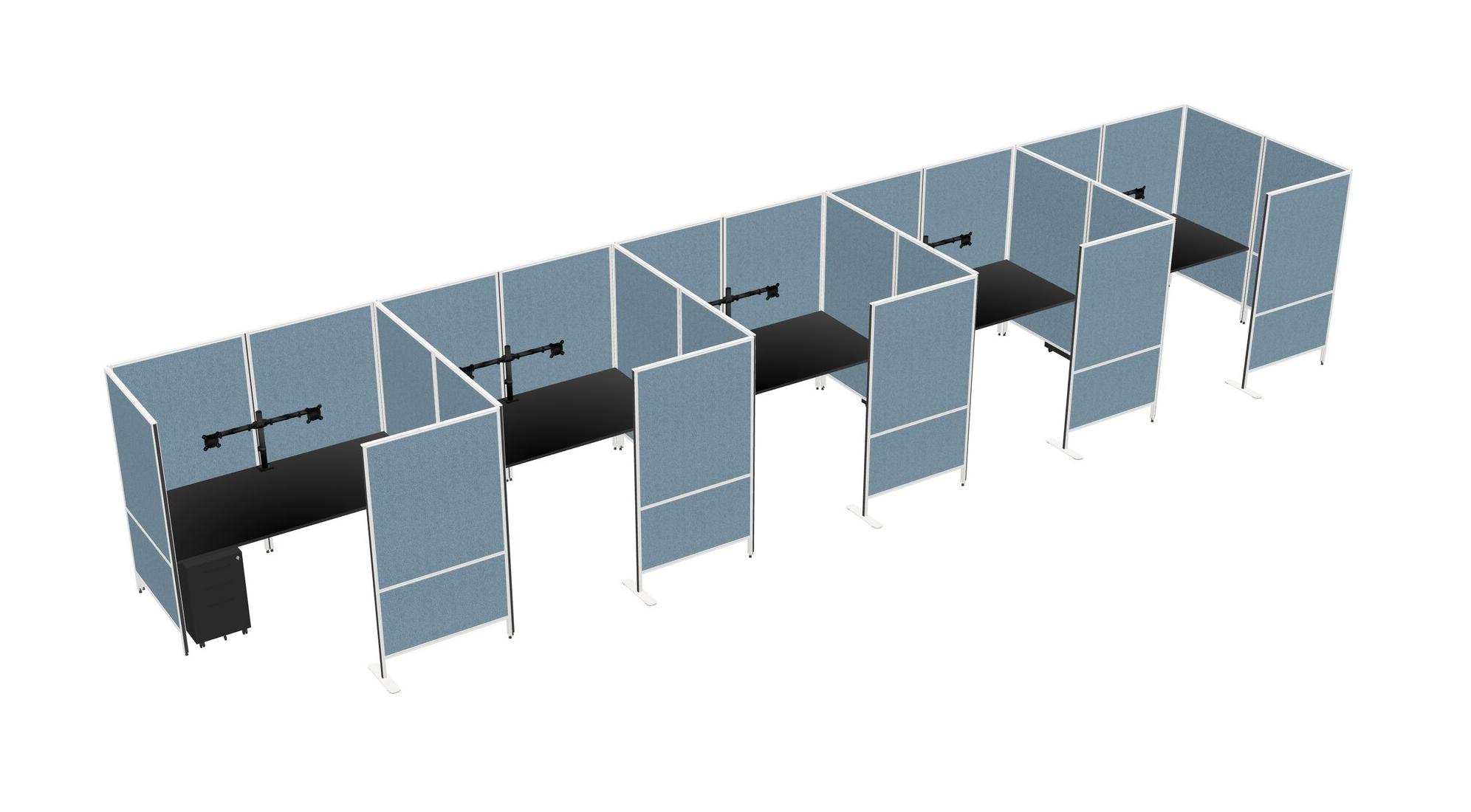 Black Flexible Panel System With Privacy For 5 + Metal Mobile Drawers + Monitor Arm (double Arms)
