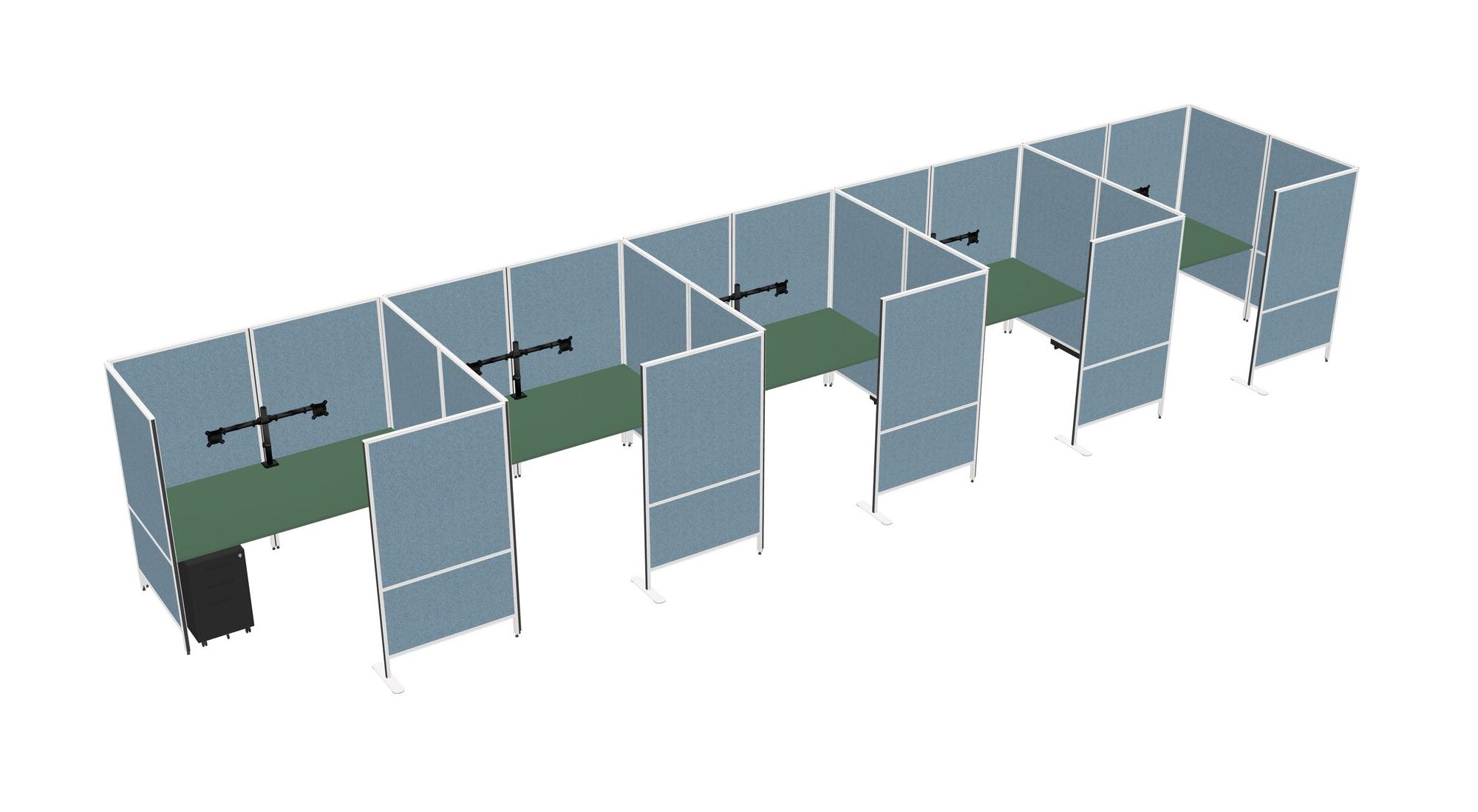 Green Flexible Panel System With Privacy For 5 + Metal Mobile Drawers + Monitor Arm (double Arms)