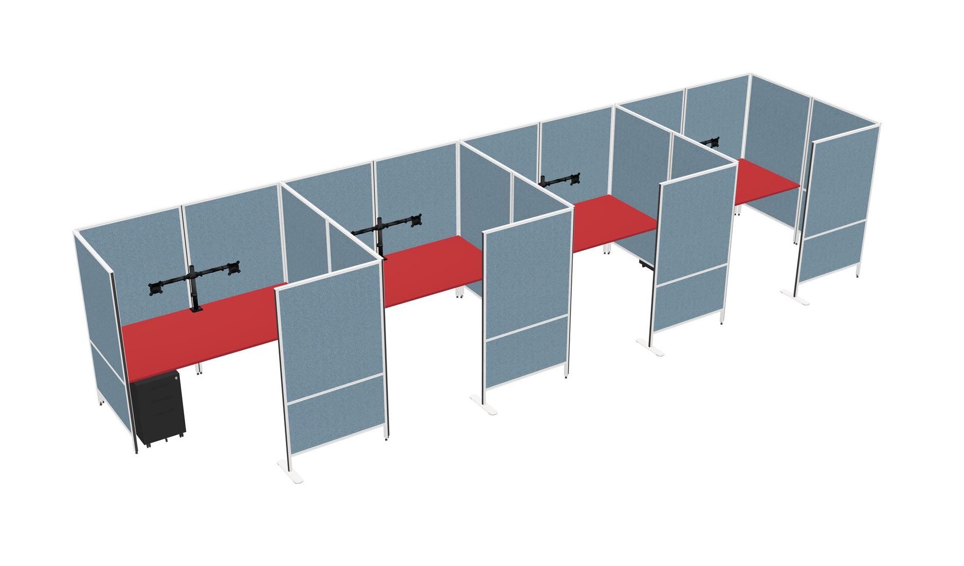 Prism Red Flexible Panel System With Privacy For 4 + Metal Mobile Drawers + Monitor Arm (double Arms)