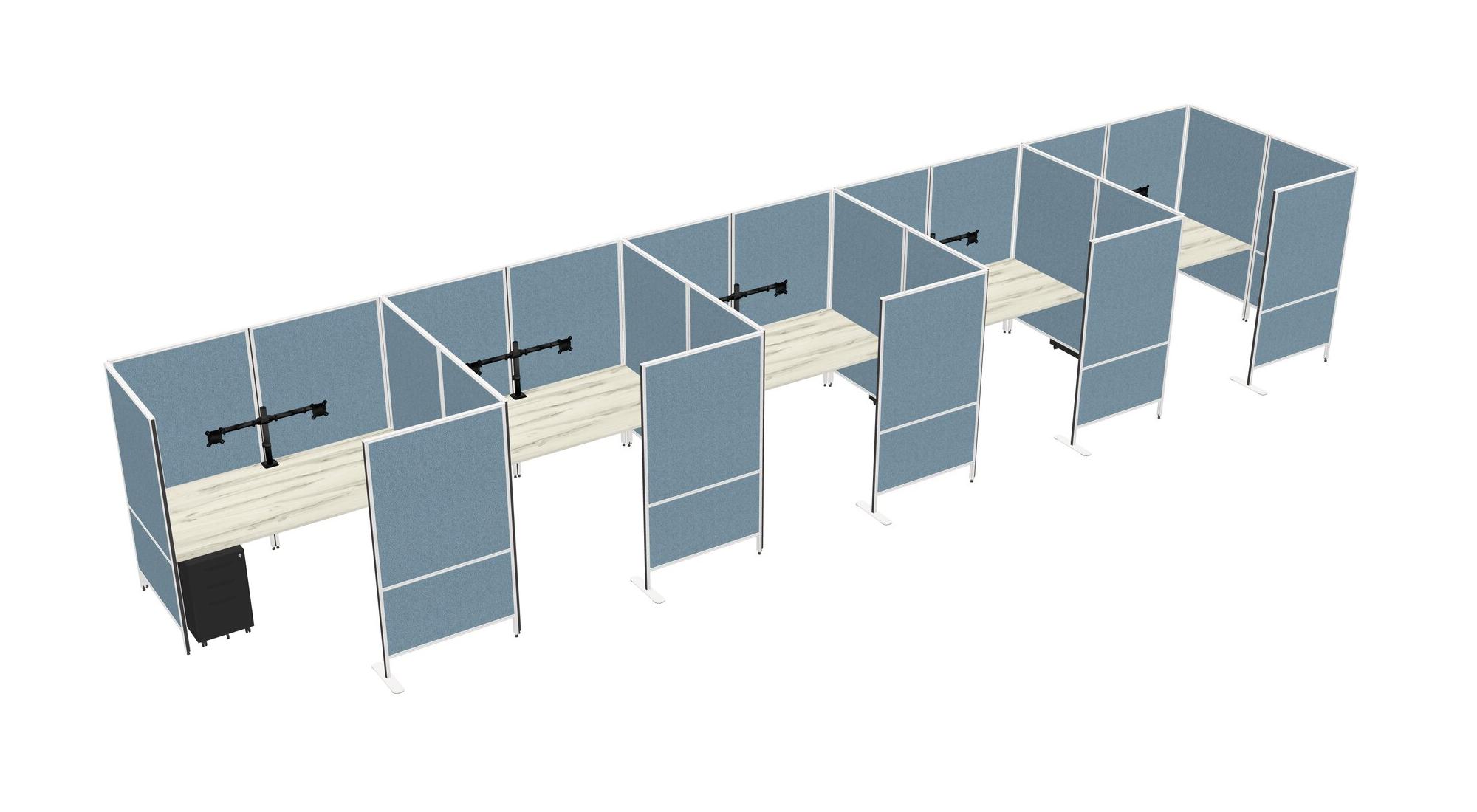 Heinne Holz Flexible Panel System With Privacy For 5 + Metal Mobile Drawers + Monitor Arm (double Arms)