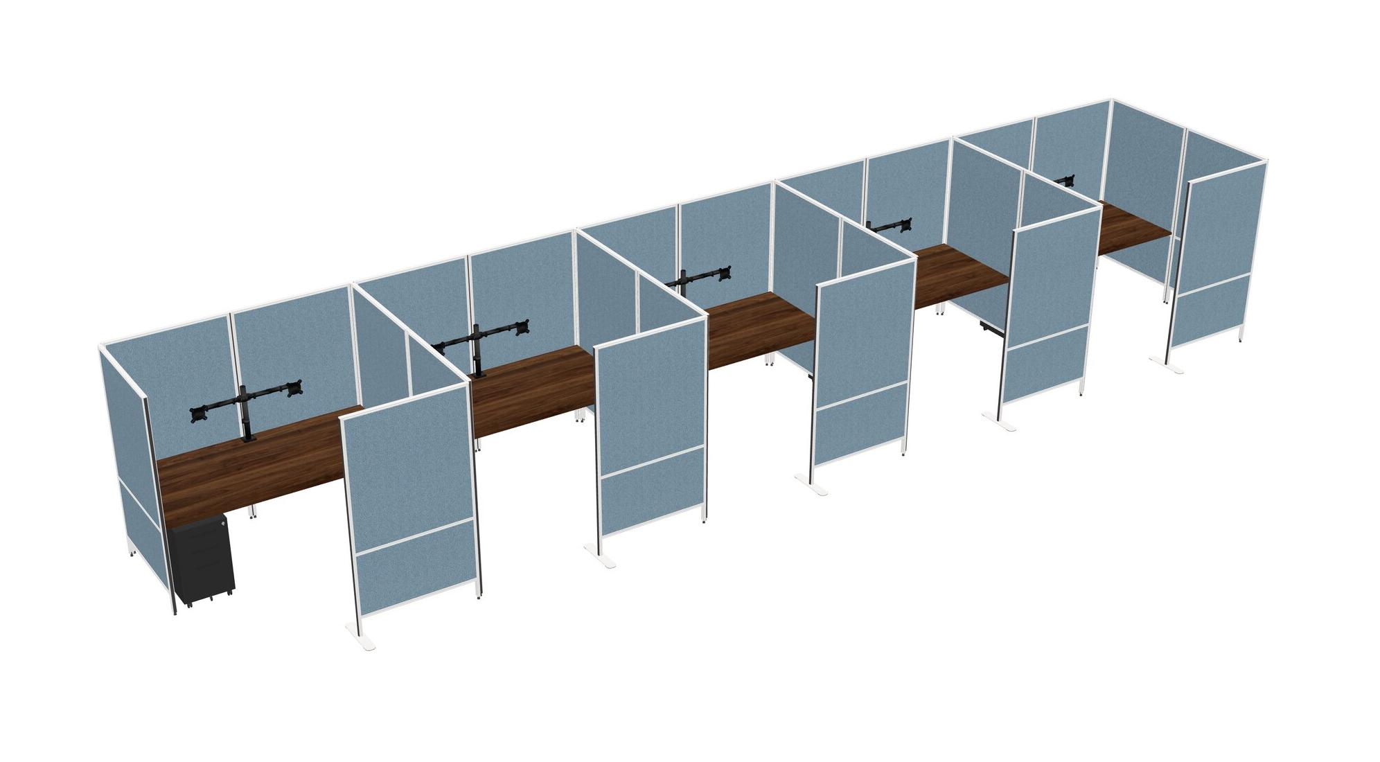 Columbia Walnut Flexible Panel System With Privacy For 5 + Metal Mobile Drawers + Monitor Arm (double Arms)