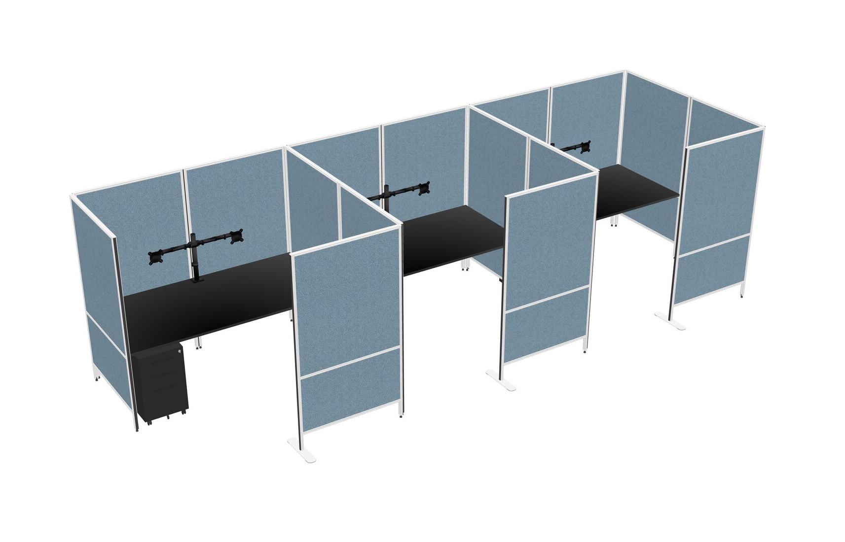 Black Flexible Panel System With Privacy For 3 + Metal Mobile Drawers + Monitor Arm (double Arms)